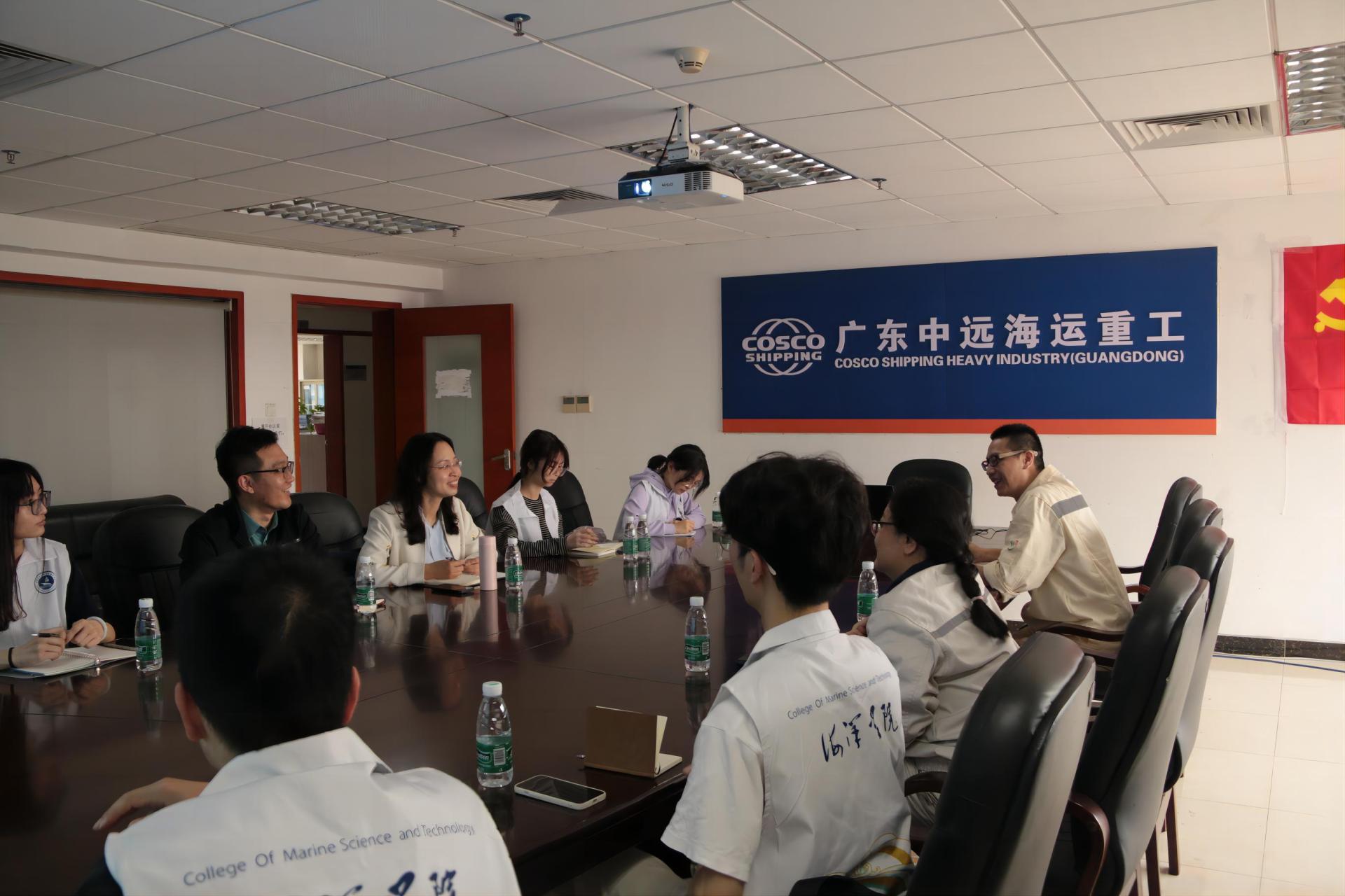 为落实党中央、国务院关于高校毕业生就业工作的决策部署,2023年3月16日,娱乐城论坛 党委副书记钟苹、团委书记陈波携10名优秀学生代表赴广东中远海运重工进行访企拓岗。广东中远海运重工团委书记郭煜宏,人事招聘高级主管赖莹莹、陈圳铮等单位代表参会交流。