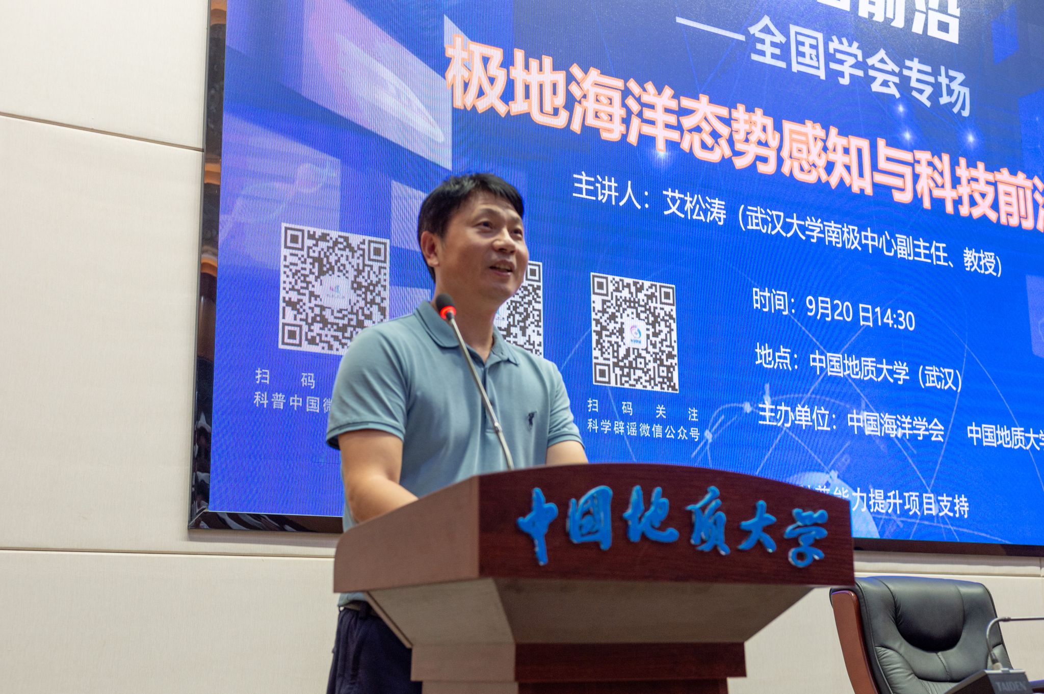 (通讯员李盼盼)以“提升全民科学素质,协力建设科技强国”为主题的2024年全国科普日活动正在火热进行中。为学习传承科学家精神、激发海洋学子对极地科考的兴趣,9月20日下午,中国地质大学(武汉)和中国海洋学会邀请中国南极测绘研究中心副主任、武汉大学艾松涛教授开展题为《极地海洋态势感知与科技前沿》的专题科普讲座。娱乐城论坛 副院长陈刚、宫勋,陈波老师及娱乐城论坛 本研学生参加。娱乐城论坛 副院长陈刚教授代表学院全体师生对艾松涛教授的到来表示热烈欢迎,并简要介绍了艾松涛教授的科研及工作经历。