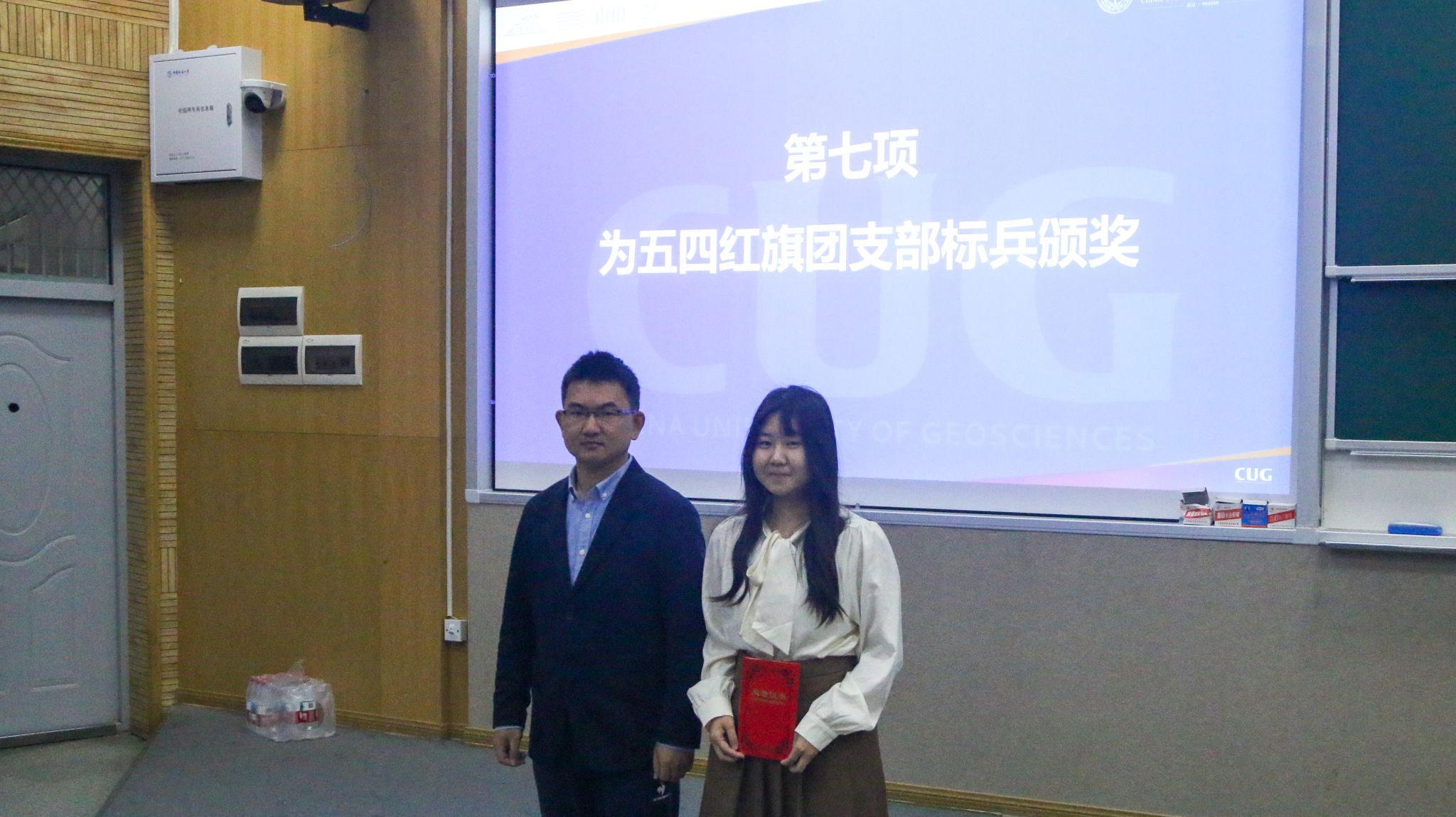 高年级学生代表,十大标兵学生林梓田发言。她结合自身实际与体会,与同学分享宝贵的科研学习经验,讲述了在地大一步步成长,见证自我、成就自我的过程。她鼓励同学们积极进取,勇攀高峰,探索属于自己的成长之路。