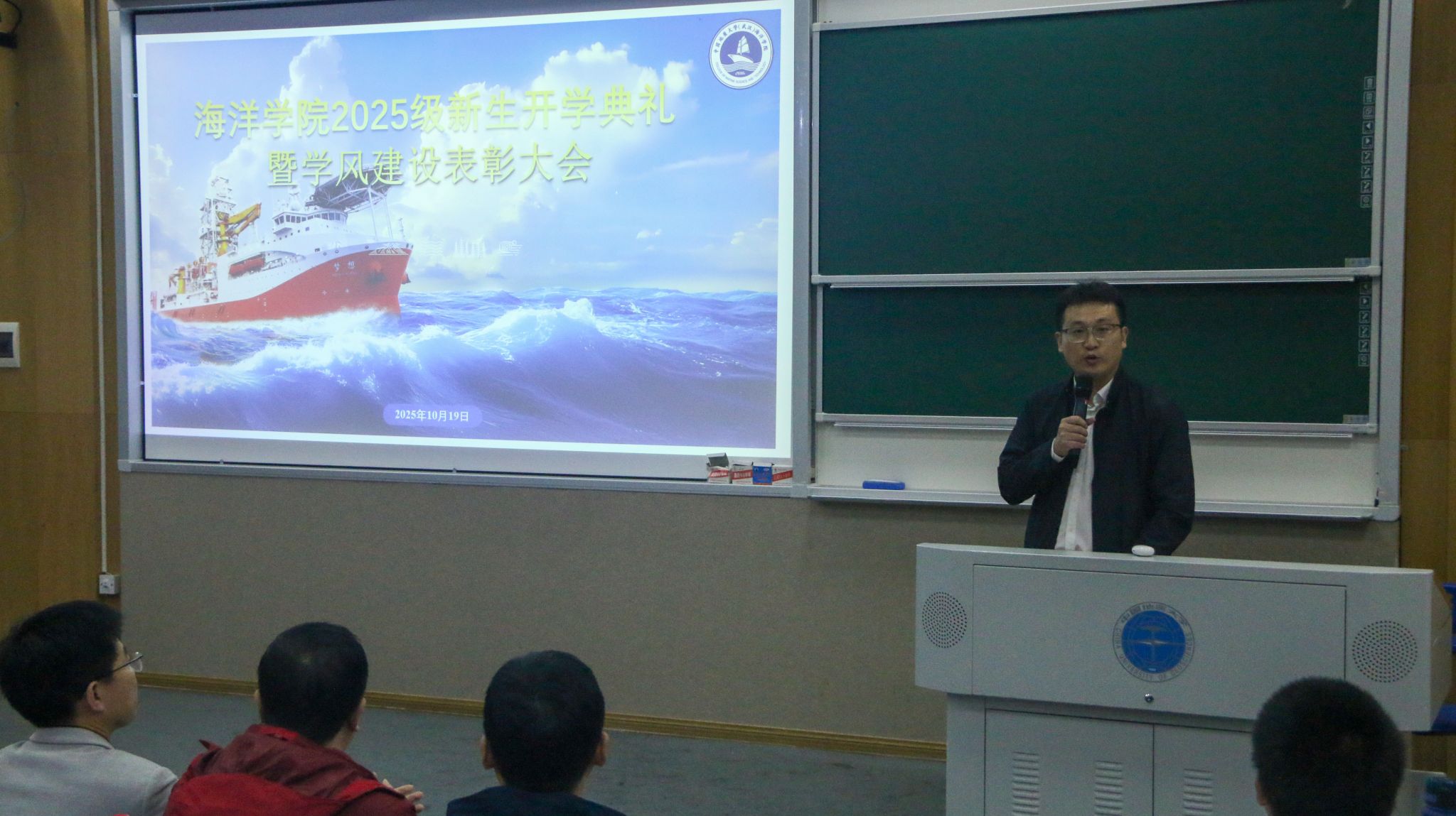 10月19日上午9:00,娱乐城论坛 2025级新生开学典礼暨学风建设表彰大会在西区教三楼110教室隆重举行。学院团委书记、辅导员陈波主持典礼,特邀校友代表、广州海洋地质调查局副总工程师沙志彬、党委书记刘国华,副院长孙启良、副院长陈刚、各系主任、教师代表、新生班主任、学生代表以及2025级全体新生共同参加此次典礼。